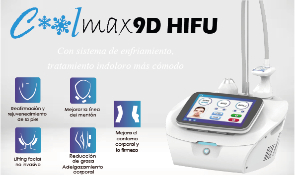 Coolmax 9D HIFU es un dispositivo reafirmante, tonificador y lifting completamente no invasivo. Coolmax 9D HIFU utiliza una refrigeración avanzada por semiconductores + tecnología de ultrasonidos focalizados de alta intensidad (HIFU), diseñada para ayudar a revertir los signos del envejecimiento y hacer que luzca más joven. Hay programas de tratamiento personalizados disponibles para todo el rostro, cuello y cuerpo. ¡Por fin se pueden lograr resultados naturales de forma rápida, indolora y segura!